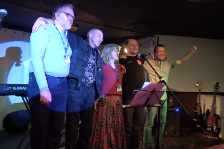 2018: Ein runder Geburtstag und dazu eine Schnapsidee. Lass uns doch die alten Band-Mitglieder zusammentrommeln und bei der Geburtstagsfeier einen kleinen Auftritt hinlegen! Thomas und Andi waren sowieso dabei, unser Toningenieur Peter von damals hilft am Bass aus und der damalige Schlagzeuger Norbert ist auch mit dabei! Leider wollten die Schubidu Girls nicht, dafür hat die Frau von Norbert, Marion sich bereit erklärt, mit den Backing Vocals auszuhelfen.
